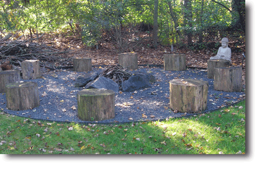 In this case the "lawn furniture" was created from a tree on the property to create a retreat that evokes another place and time.